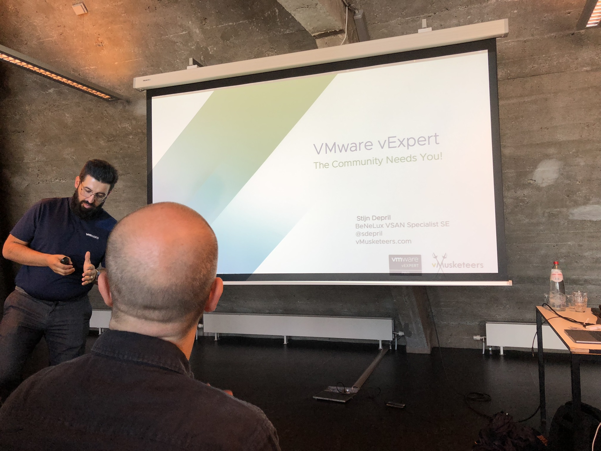 The last session of the day was about the vExpert program. It was really nice to hear our local vExpert PRO Stijn Depril talk about the community. We also got to hear some feedback from current vExperts Maarten Van Driessen / Harold Preyers & Tom Vallons which was an eye-opener. Apparently we Belgians are modest and shy, but that shouldn’t hold us back to apply for vExpert. If you have a story to tell and want to give back to the community then you should apply for vExpert. So I’m going to put my money where my mouth is and applying for it this weekend. Fingers crossed π