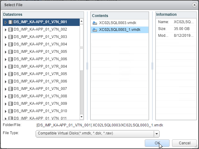 Browse to the location of your vmdk and click on “Ok” to add the disk
