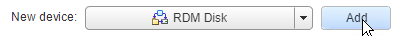 Go to your first node and edit the settings of the VM. From the dropdown list choose “RDM Disk” and click on add