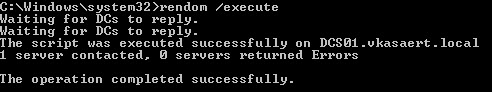 And now we will execute the domain change. Execute “rendom /execute”. When this command is executed it will reboot your Domain Controllers after a few seconds.