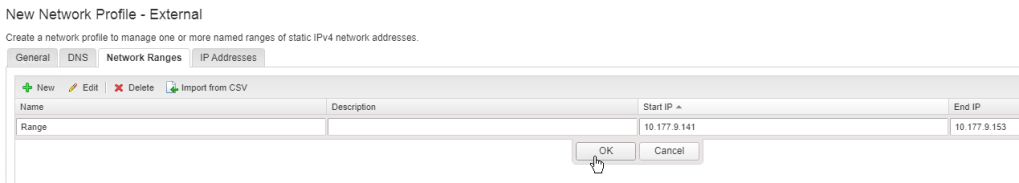 In the tab “Network Ranges” click on New