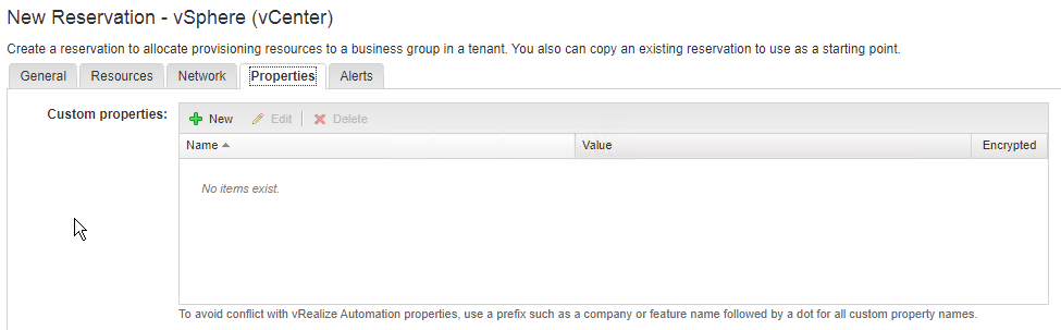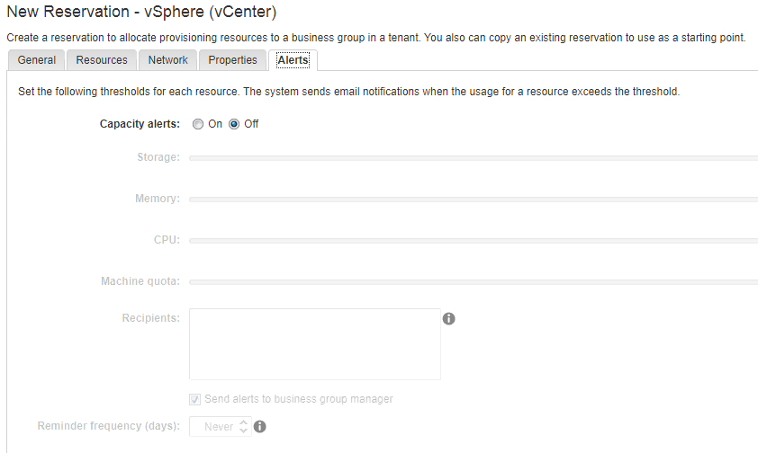 Now we’re finally able to create a reservation. Go to Infrastructure => Reservations => Reservations. Click on “New” and choose where you want to create your reservation. In our case it’s on vSphere.