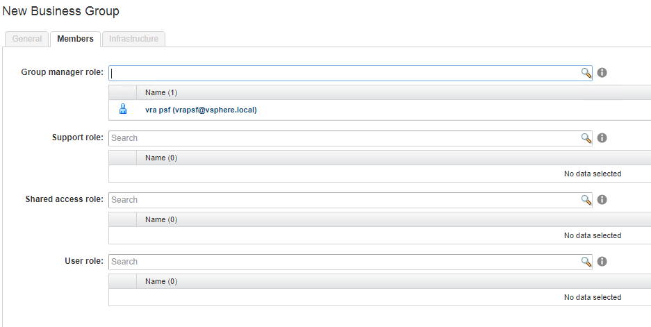 In our setup we only needed a Business Group to make our reservations so that’s why only a Group Manager role was filled in.