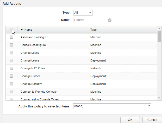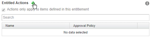 In our use case we can skip the items section, but we’ll need to add the actions. Click on the green plus-sign next to “Entitled Actions”.