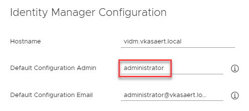 The account that is here mentioned as “Default Configuration Admin” is the account you will need to use to connect to your vRA environment.