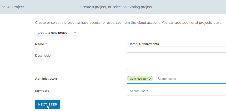 I had already deployed an NSX-T instance, so I added the configuration for that and validated the credentials. After that go to the Next Step.