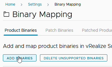 Go to LifeCycle operations => Settings => Binary Mapping and click on “Add Binaries”