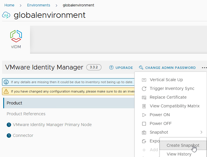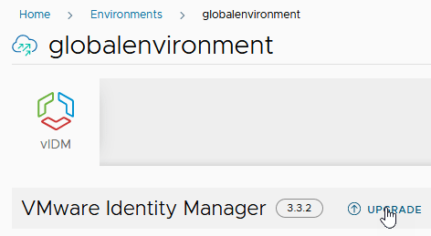 Now go back to LifeCycle operations => Environments. And go in to your VIDM environment. Click on “Upgrade”