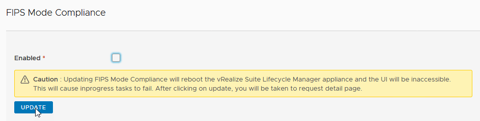 I had FIPS enabled, this was probably enabled during the initial install where I didn’t pay attention to it. So if we want to upgrade our LCM appliance I need to remove this setting. Just click on “here” to change that setting.