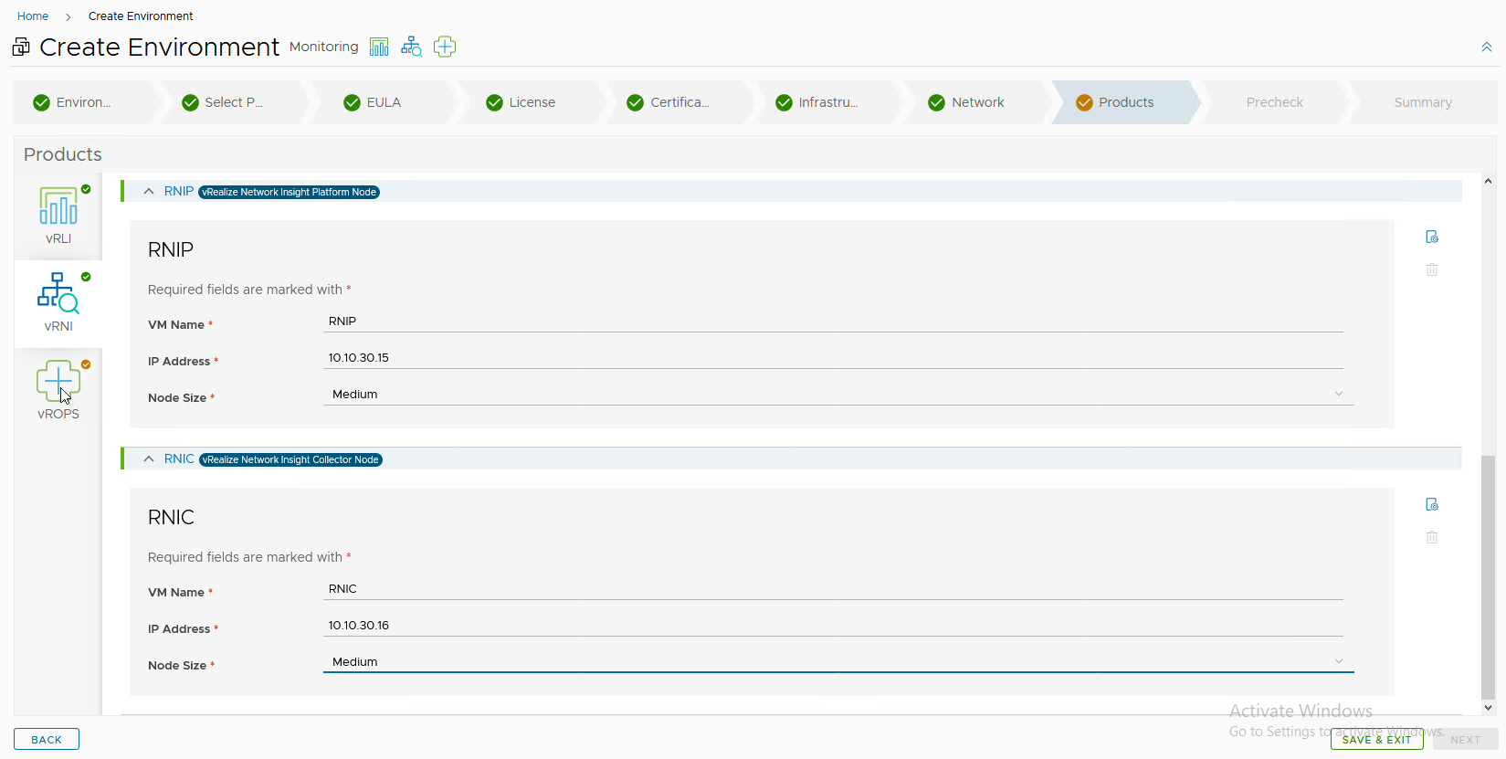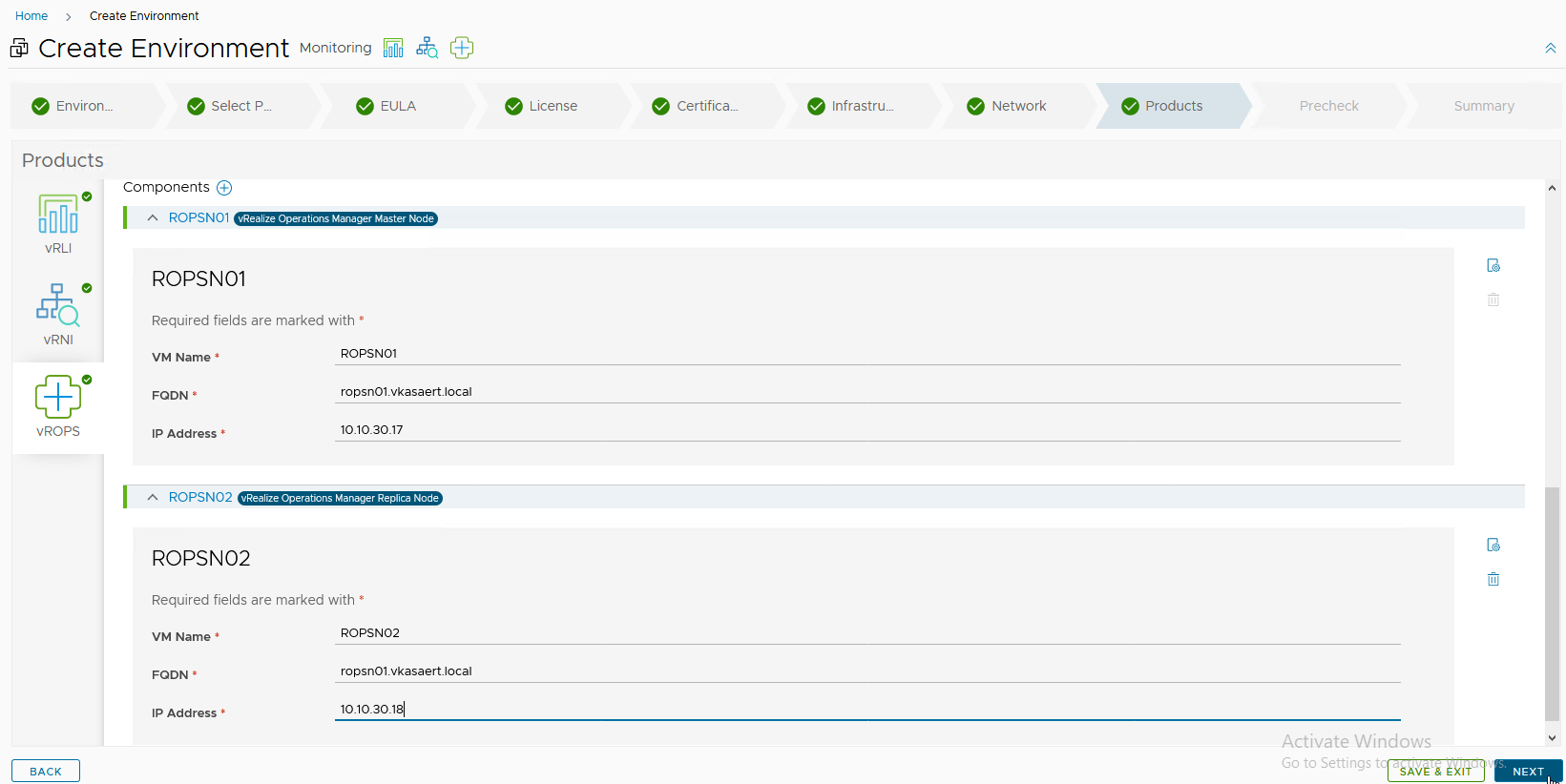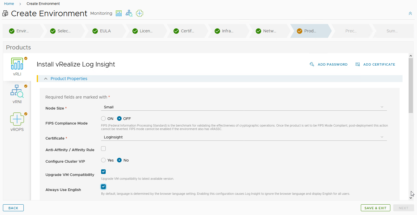 Select vRealize Loginsight, vRealize Network Insight & vRealize Operations. Only for vRealize Operations I’ve chosen a small HA cluster, for the rest I just used the Standard Deployment Type.