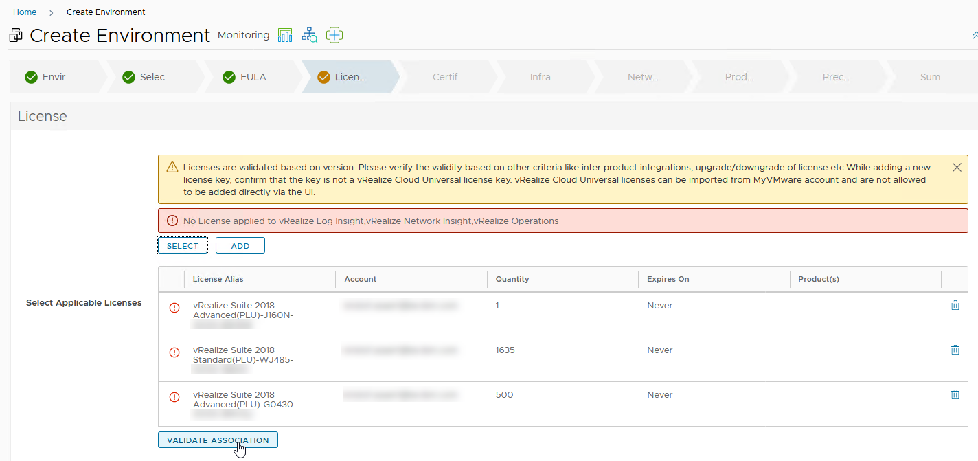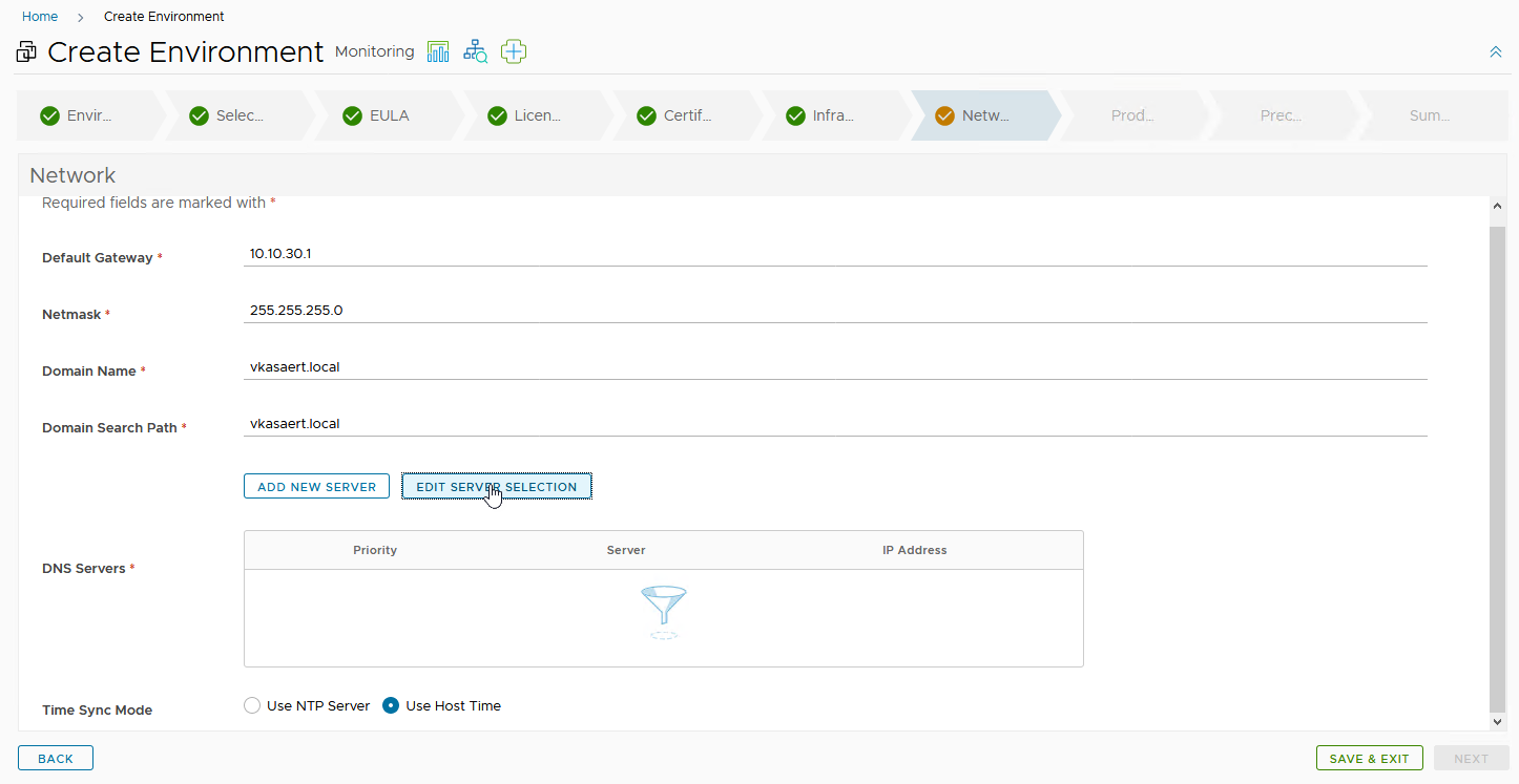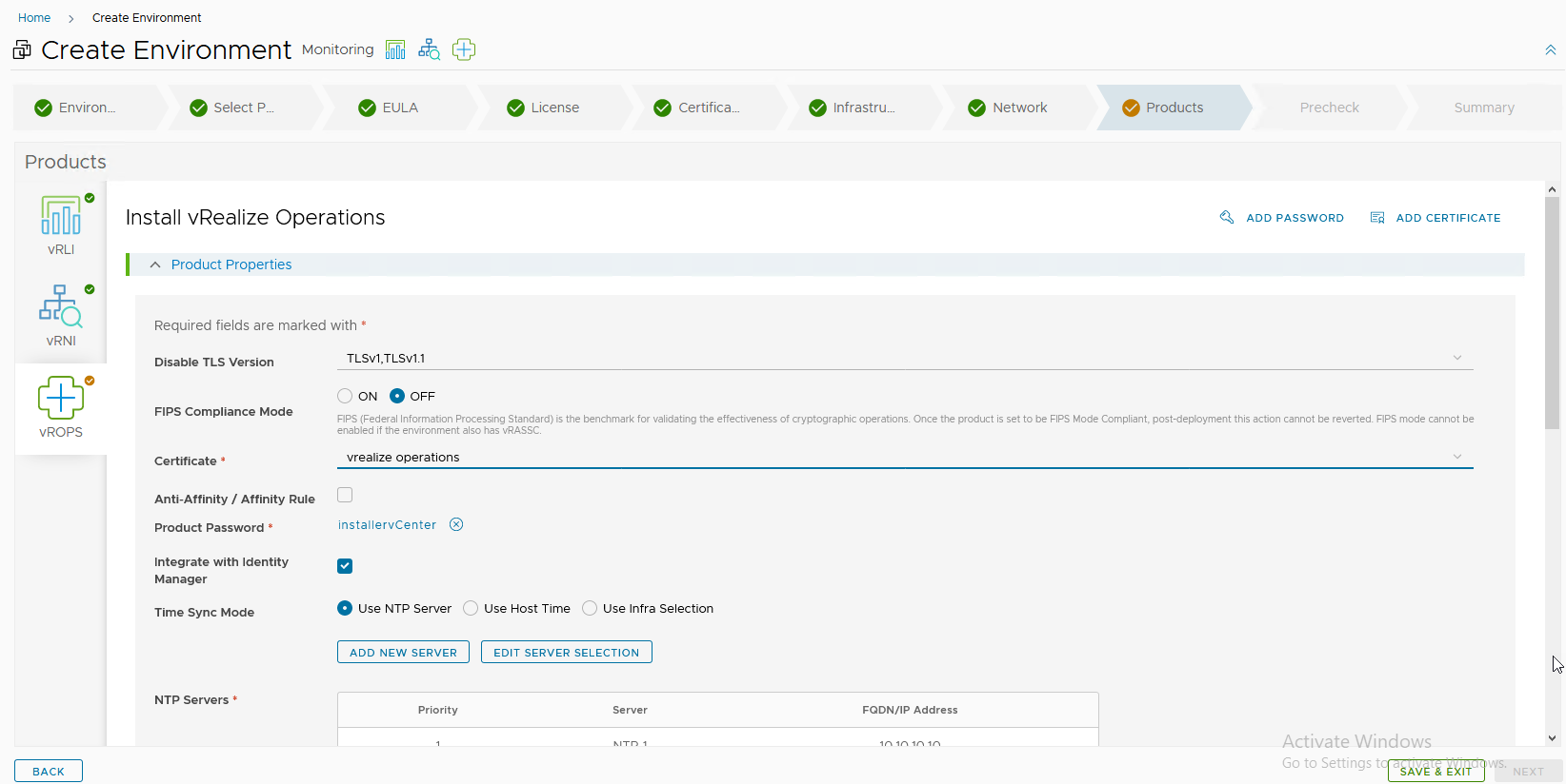 Select vRealize Loginsight, vRealize Network Insight & vRealize Operations. Only for vRealize Operations I’ve chosen a small HA cluster, for the rest I just used the Standard Deployment Type.