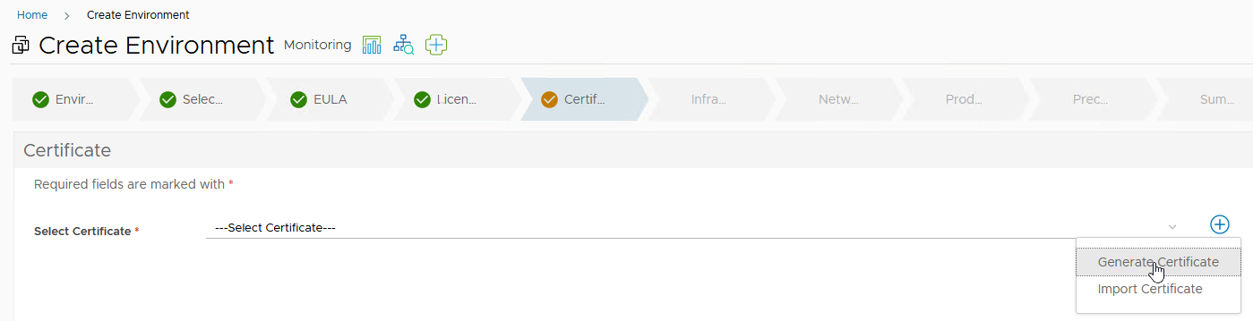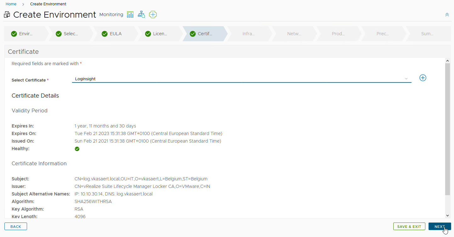 Also for Network Insight we will need to create an extra certificate. Click on “Add Certificate”