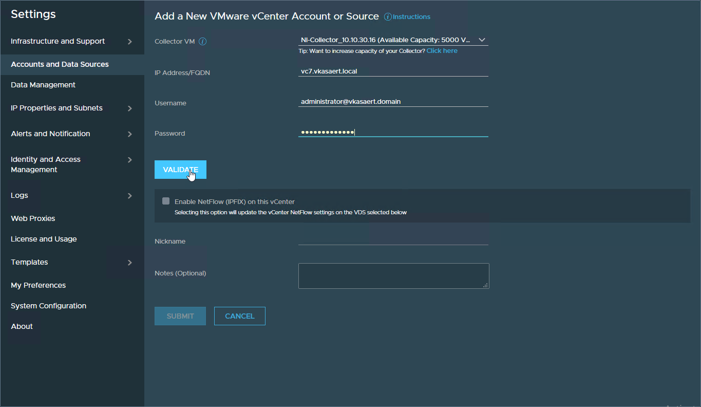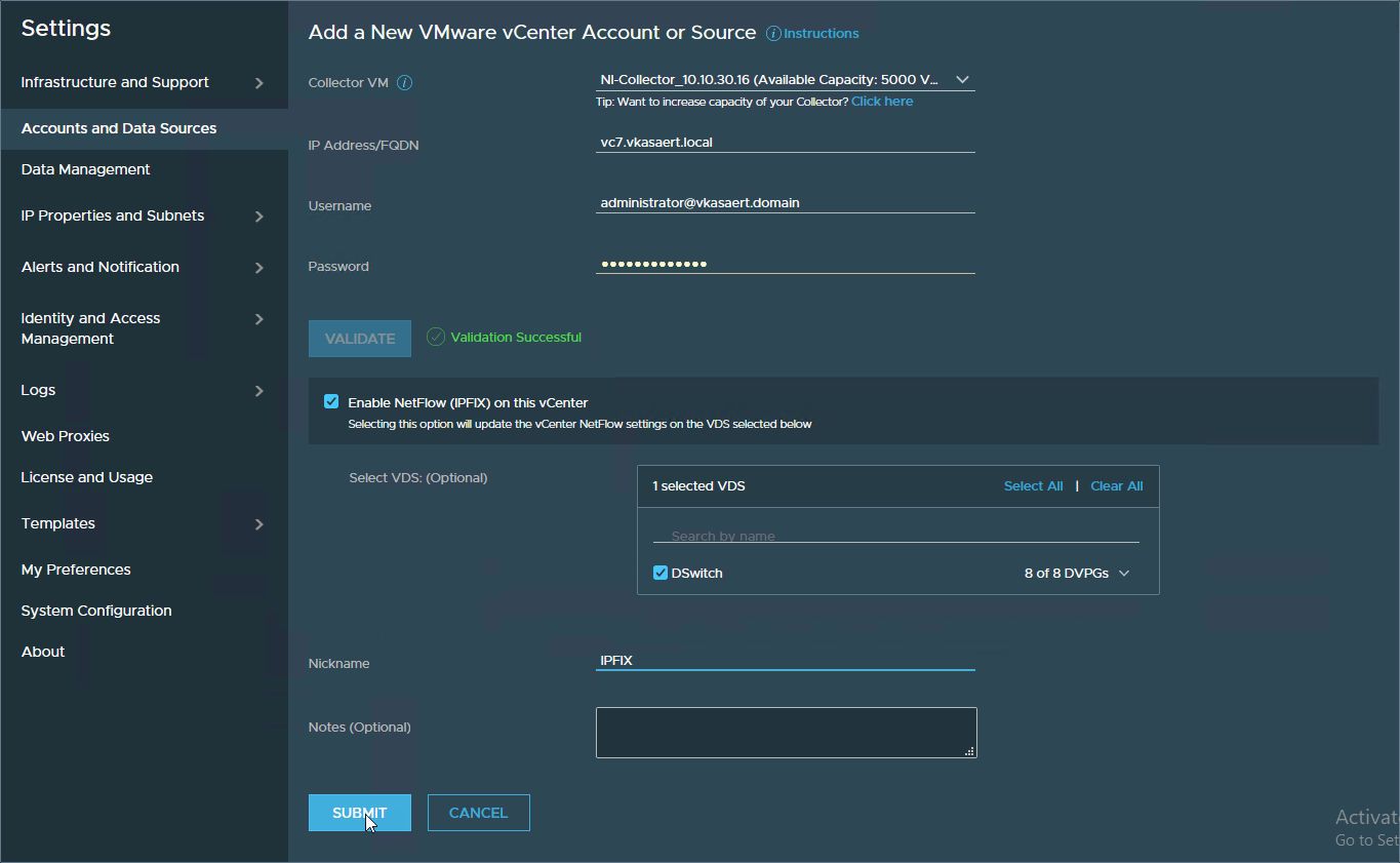 I selected all my VDS’es and gave a nickname “IPFIX” not sure where I will see this nickname.