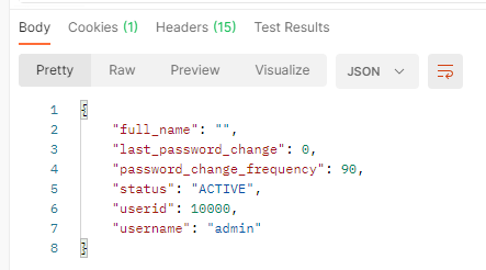 Now if you want to change the password you change your command to a PUT command. You change your API call to “/api/v1/node/users/10000”. 10000 is the ID of the admin account. You leave your “authorization” tab to what it was and in the “body”