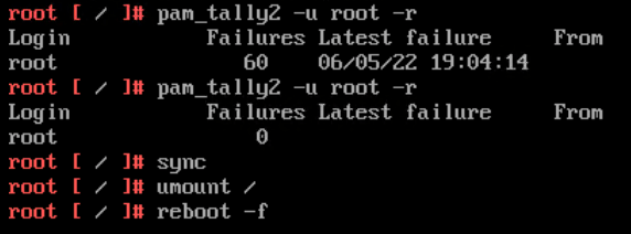 and then just to be sure I’ve check the status again with pam_tally2 -u root