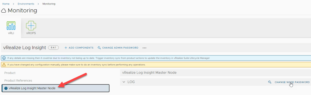 In case you need to change the root account of your appliance(s), you first go to your appliance. In my case I only have 1 master node, and then on the left you will see the option to “change node password”. Once you click that you can change the root account of your appliance.