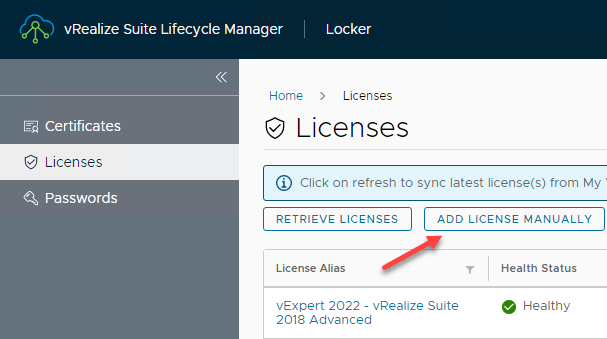 And then you can “Add License Manually” or “Retrieve Licenses” through your “My VMware account”