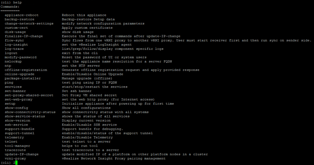 On one hand you have the “consoleuser” and on the other hand you have the “support” userid. With the consoleuser you have access to a small cli to execute some basic troubleshooting tasks. Where you can see the commands below.