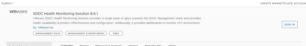 Go to VMware’s marketplace and download SDDC Health Monitoring Solution 8.6.1