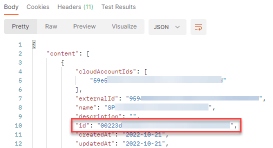 - regionId: the ID of the cloud account where you want to create your storage profile. Sent a GET command to /iaas/api/cloud-accounts-vsphere and the red square contains your regionId