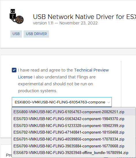I’m going to install vSphere 8, so I need to download the matching USB NIC driver from the Fling website => link