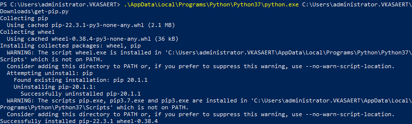 .\Appdata\Local\Programs\Python\Python37\python.exe C:\Users\administrator.VKASAERT\Downloads\get-pip.py